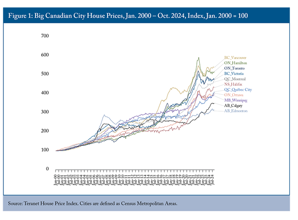 “Overall, we’ve been building more than is often recognized,” says the report. Save for the recent surge in immigration, Canada had a roughly 50-year record of matching population growth with housing, over which time we still saw substantial home price growth, specifically beginning in 2000. Even in 2024, the study finds, 17.5% of housing starts were in Toronto and 12.2% were in Vancouver – both exceeding their percentage of Canada’s population. But still no relief.
