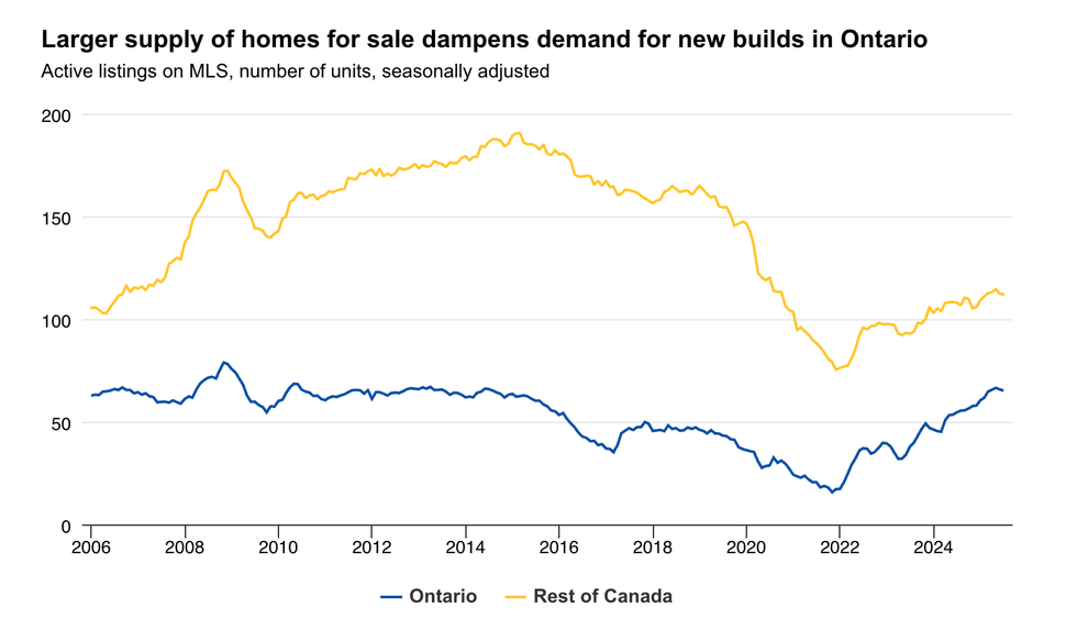 “The full impact of the current slowdown in housing starts won’t be felt for years in Ontario. It can take two, three or more years to complete a large multi-unit project once the foundation has been poured,” he adds. “Indeed, the GTA market is still absorbing the wave of condo units completed in 2024 started during the pandemic or even earlier. Units currently under construction (more than 93,000 units as of July) are just 11% off from all-time highs in the region, which suggests completions are likely to stay relatively plentiful (albeit diminishing) in the near term.”
