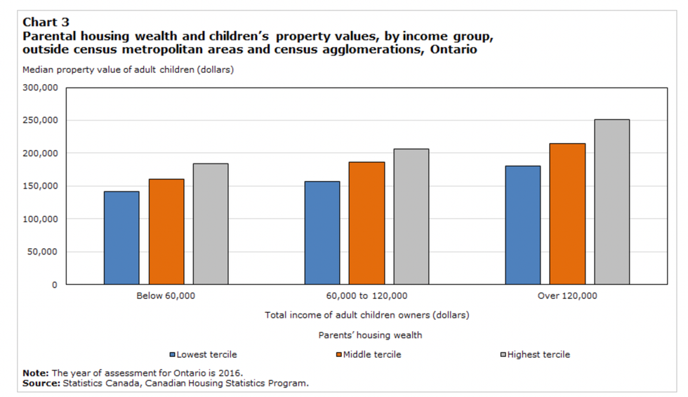 As StatCan highlights, their results suggest that parental property ownership affects not only children's ability to access home ownership as adults, but also the value of the properties they own and, therefore, their ability to build up greater home equity and financial assets.