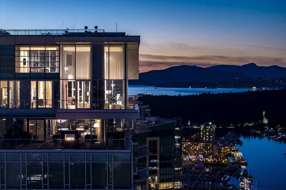 This exclusive 6,480-sq.-ft residence offers a rare opportunity to own a piece of the city's skyline, complemented by breathtaking vistas of the Pacific Ocean, North Shore Mountains, and the dazzling cityscape.