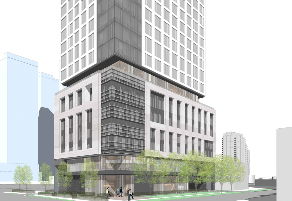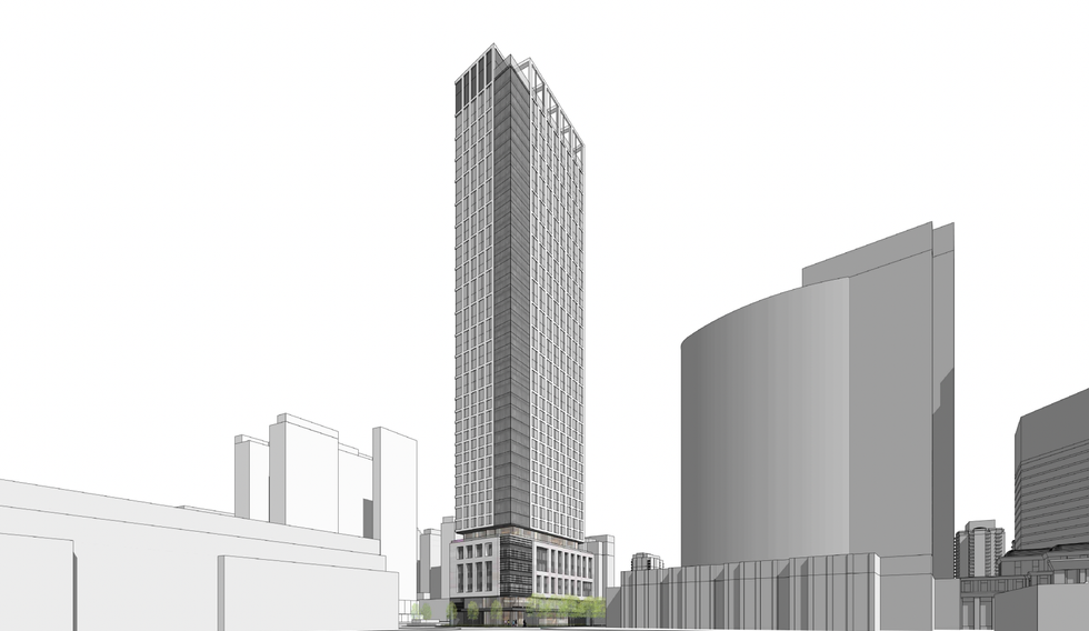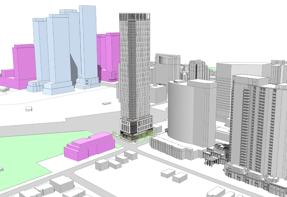 Once complete, the development would consist of a six-storey podium with a 40-storey tower element above and a total gross floor area of 330,408 sq. ft. Plans also envision a a number of public realm improvements including a widened pedestrian zone along Hendon Avenue.