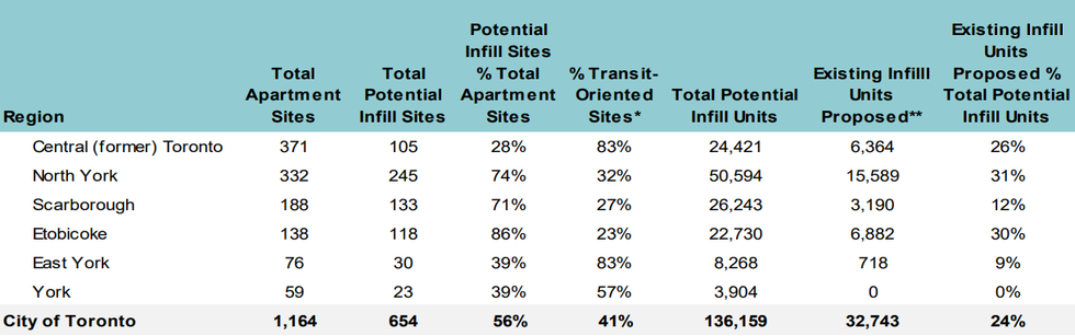 “The potential infill sites could accommodate an estimated 182,023 units, which was 4.5 times as many units as currently proposed at existing rental sites when including both purpose-built rentals and condos,” the study says. “While the greatest potential for infill development was in the City of Toronto, with 136,159 units that could be accommodated, most of the supply potential totalling 111,738 units was in more affordable areas outside of Central Toronto, with an additional 45,865 units located in the 905 region.”