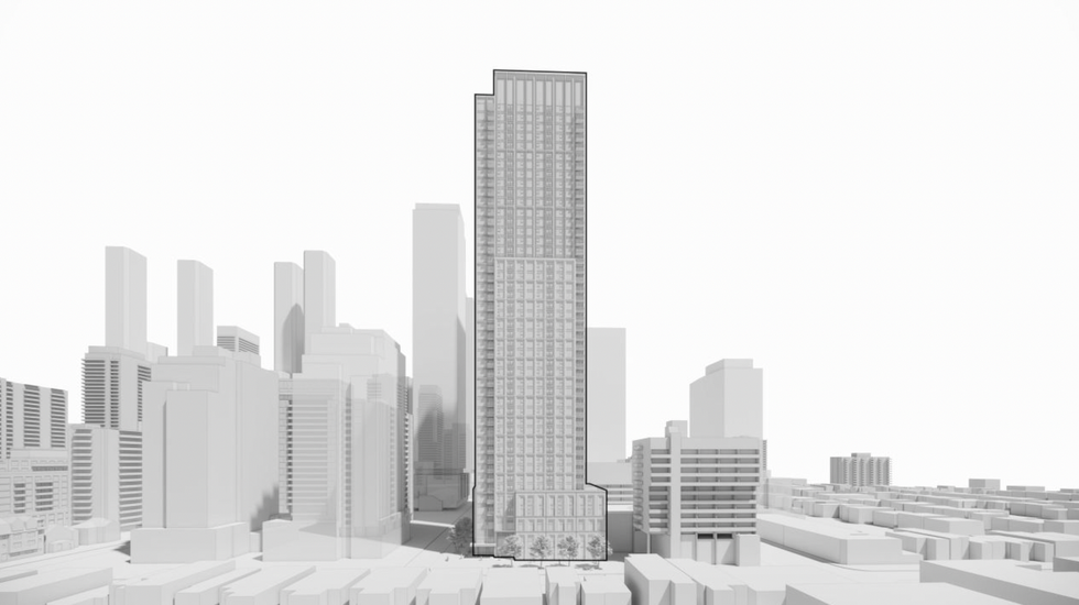 Plans for a 21-storey residential development that received zoning approvals in 2022 were recently revised to propose a 45-storey purpose-built rental building offering 527 new dwelling units in Toronto's Mount Peasant neighbourhood.