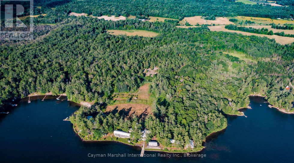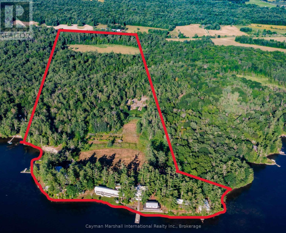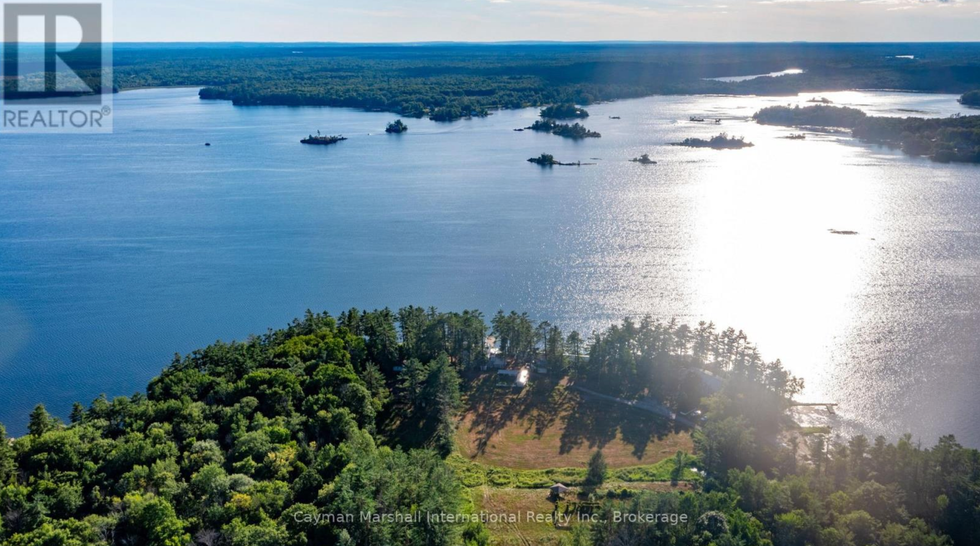 Located at 1711 Delmonte Road on the northeast shore of Muskoka's most southern lake, the property is a 90-minute drive from the city and connected to the Trent-Severn Waterway. Spanning nearly 54 acres and touting around 1,700 feet of west-facing shoreline, it's one of the largest properties for sale on the lake.