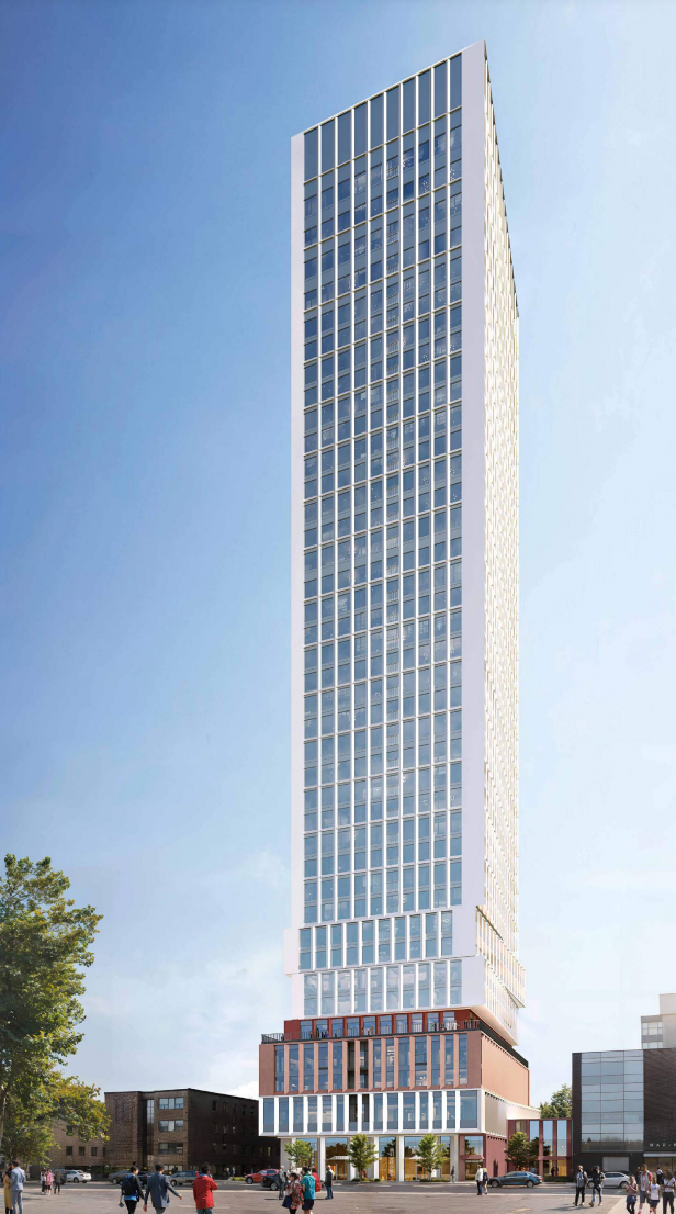 Designed by Kirkor Architects and Planners, the towering build would feature a four-storey base with an eclectic combination of styles, each making use of a different building material, including red brick, concrete, and coloured metal. Above, would rise the sleek 35-storey tower element.