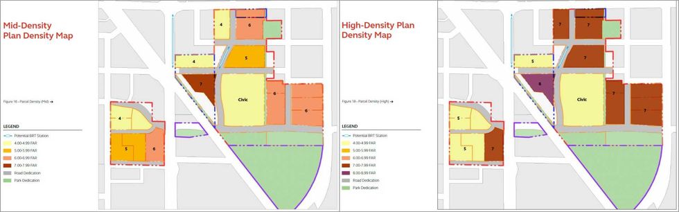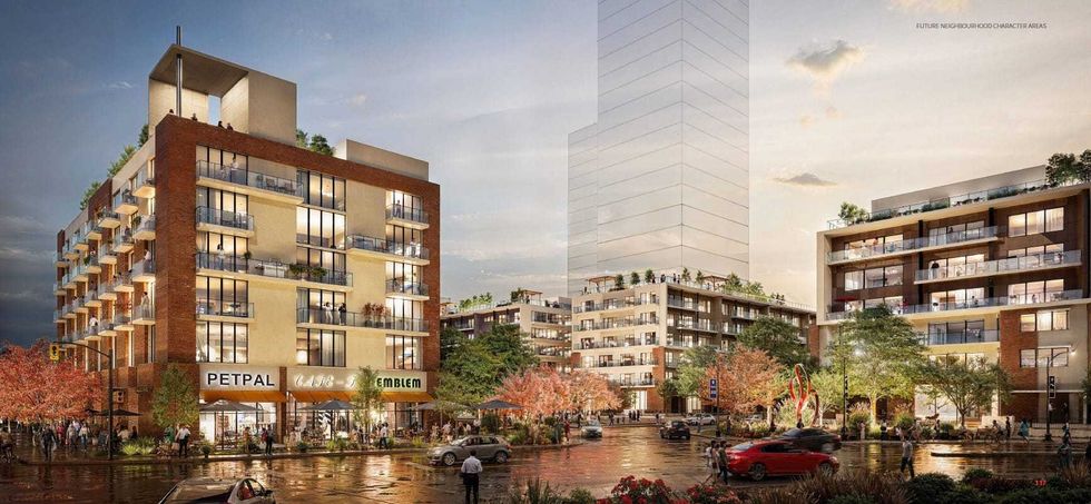 The alternative high-density plan, which is described as a “SkyTrain-light version of TOD,” would see that 2.2 million sq. ft of development and 2,200 new homes increased to 3.6 million sq. ft and 3,700 new homes, with towers between 20 and 25 storeys in addition to some six-storey buildings.
