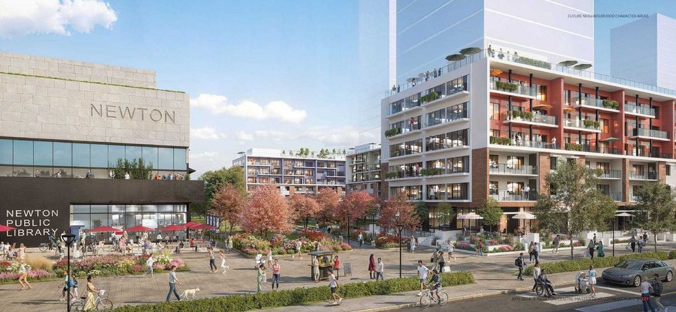 The overall vision for the Newton Centre Master Development Plan, which would unfold over 30 years, will see 2.2 million sq. ft of development that will include over 2,200 new homes, over 150,000 sq. ft of retail space, a new Newton Community Centre, and 15.7 acres of park and public space.