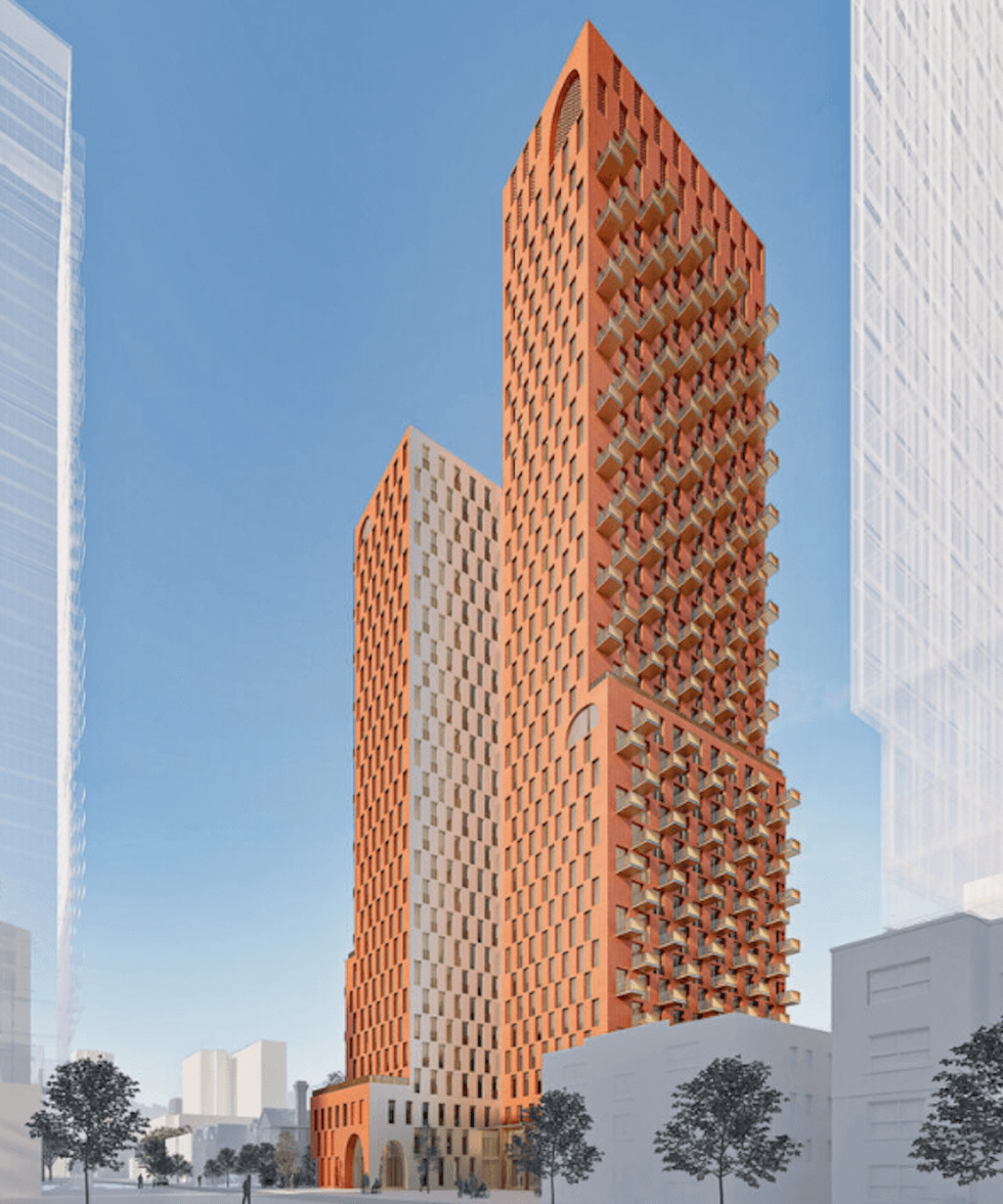 Redevelopment plans for 405 Sherbourne were submitted to the City in November 2025, and those call for a 35-storey mixed-use building with 301 residential units, including a 61% share of larger, family-sized units and up to 90 affordable housing units. A portion of the development’s ground floor is being reserved for community uses.