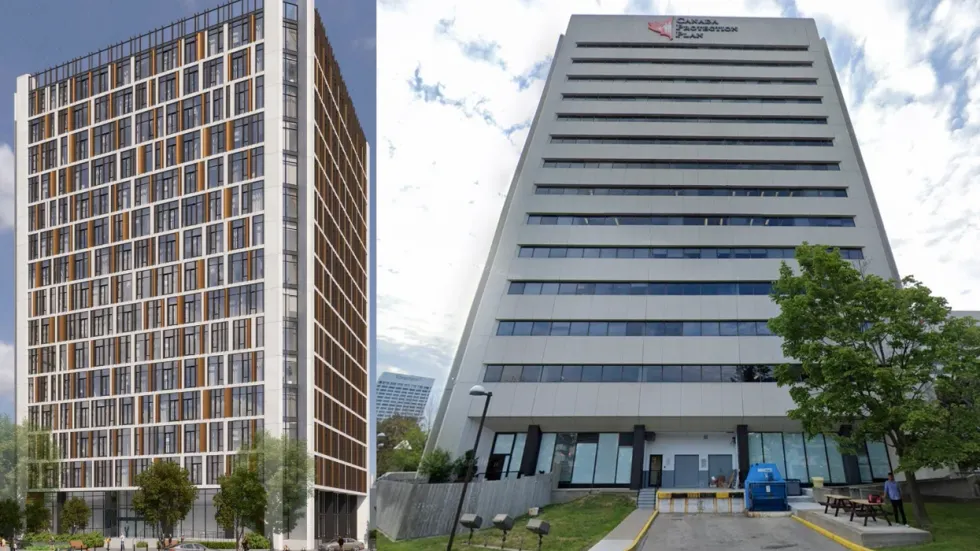 This office retrofit project would involve converting a 14-storey office building into a mixed-use building home to 331 'e-lofts,' the majority of which would be family-sized, and a neighbourhood café and office-style 'co-working hub.'