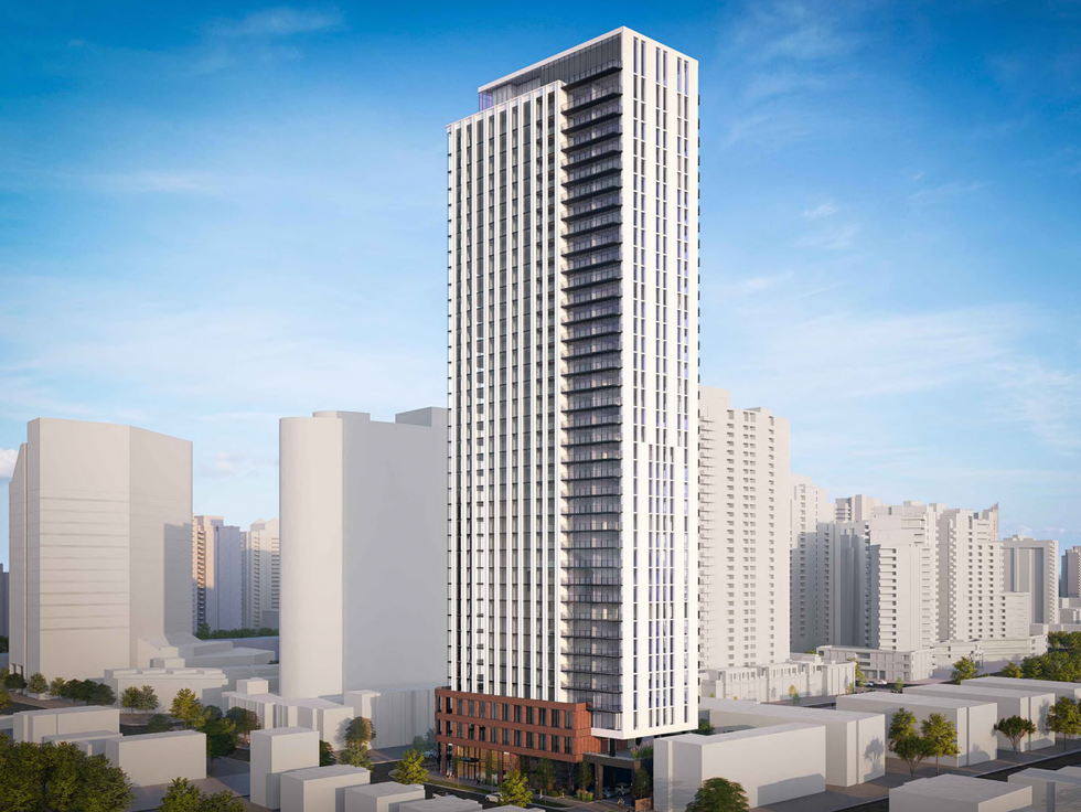 This North York address, which is currently occupied by four one-storey detached homes, could soon be redeveloped with a 38-storey purpose-built rental building, designed by Arcadis, that would bring 399 rental units and 518 sq. ft of retail space within walking distance of higher-order transit.