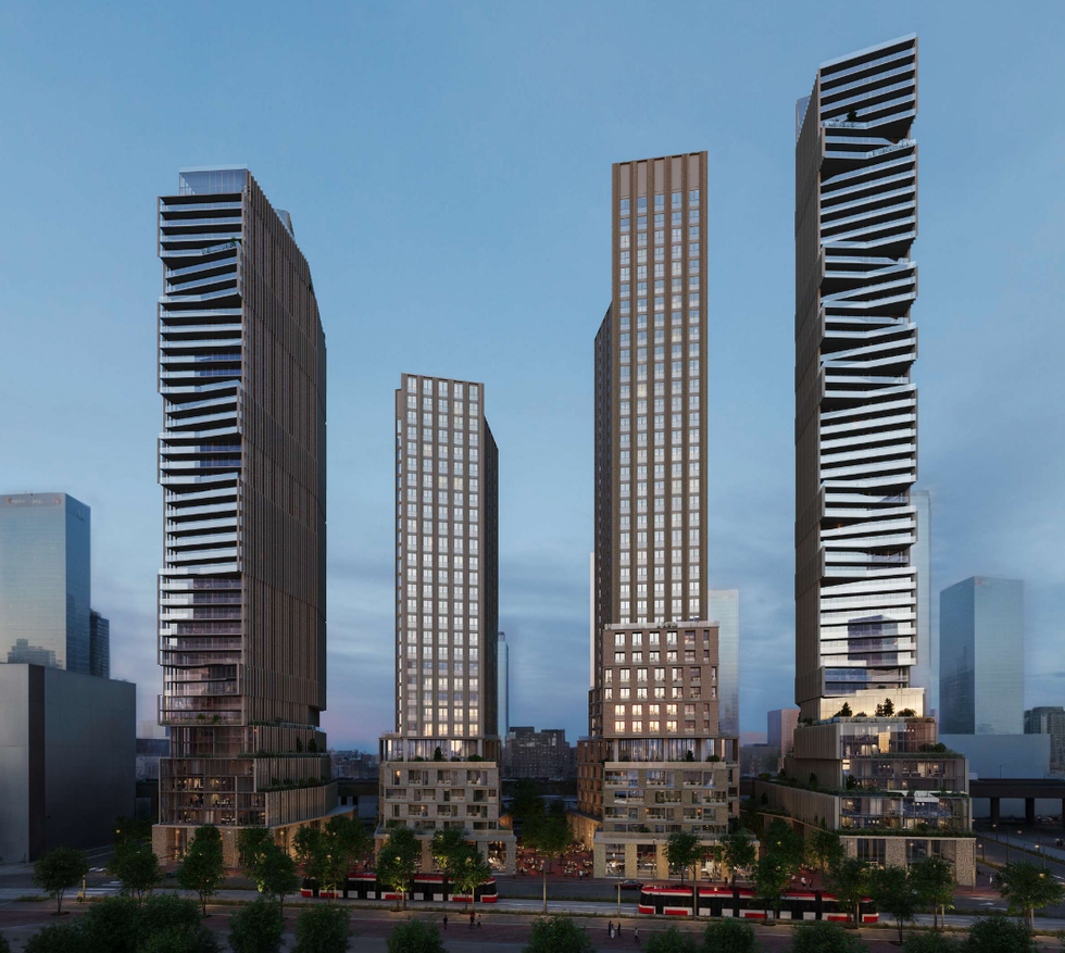 Last, but certainly not least, plans have been filed for a massive four block, 14-building master-planned community that could one day transform Toronto's eastern waterfront. The community would contain building heights ranging from mid-rise to 53 storeys, 4,994 total housing units, 146,378 sq. ft of non-residential space, 24,756 sq. ft of publicly accessible open space, a 46,618-sq.-ft 'Water’s Edge Promenade and Park', and a number of mid-block connections to the waterfront.