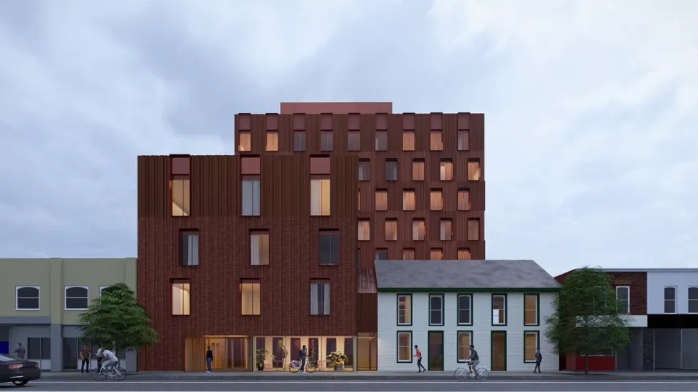 All the rage these days is the 'missing middle' — a movement exemplified by this proposal for a two- to eight-storey purpose-built rental development in East Danforth. The project is the first in a five-building missing middle portfolio being launched by Collecdev-Markee in order to provide a wider range of housing options for Torontonians. The development would incorporate a two-storey heritage structure with retail at grade, alongside a four- and eight-storey residential component which would provide 64 rental units. Designs from Batay-Csorba Architects showcase a charming red rick exterior and a unique interior courtyard where residents would be able to gather.