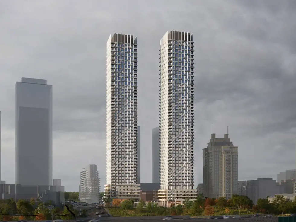 Castlepoint Numa’s plan to redevelop 115 Saulter Street South in Toronto’s Port Lands with a pair of high-rises dates back to 2024, when 40- and 45-storey buildings were proposed. About a year after that, the plans were revised to reflect heights of 53 and 47 storeys. One of the things both proposal versions had in common was that the towers were shown to be asymmetrical, reminiscent of a nearby industrial smokestack.