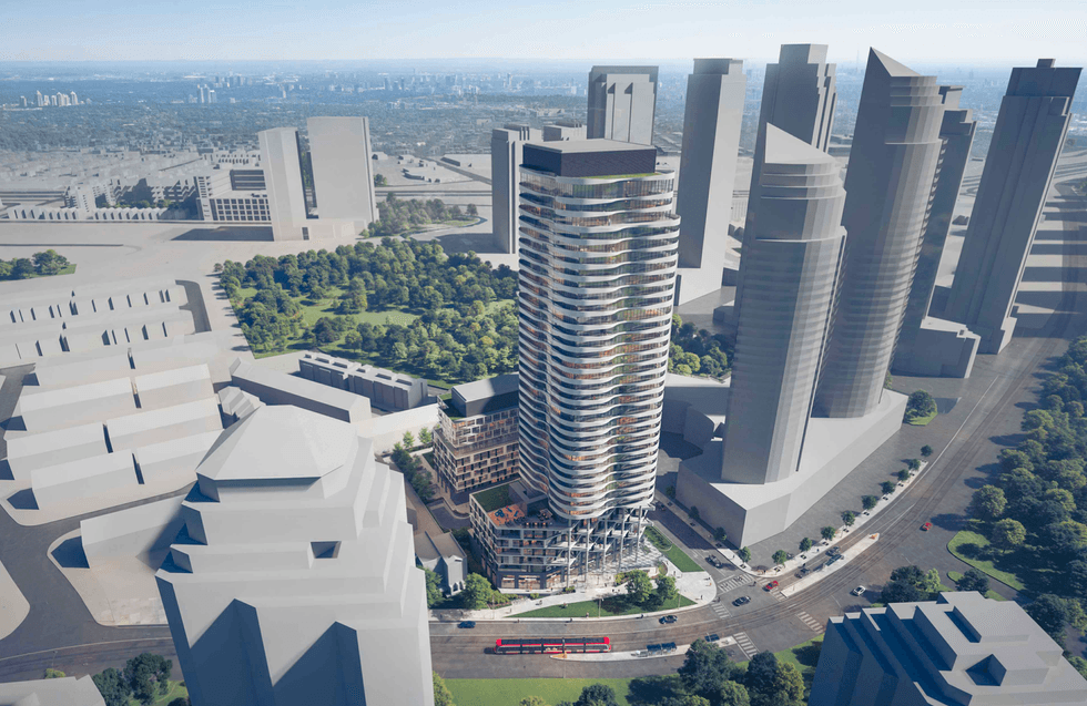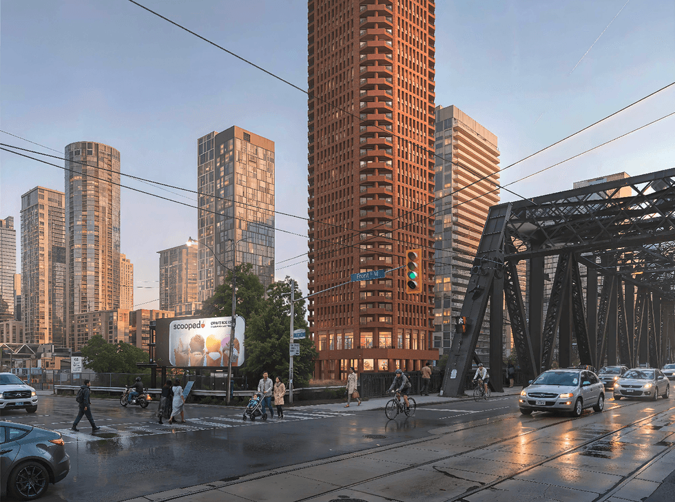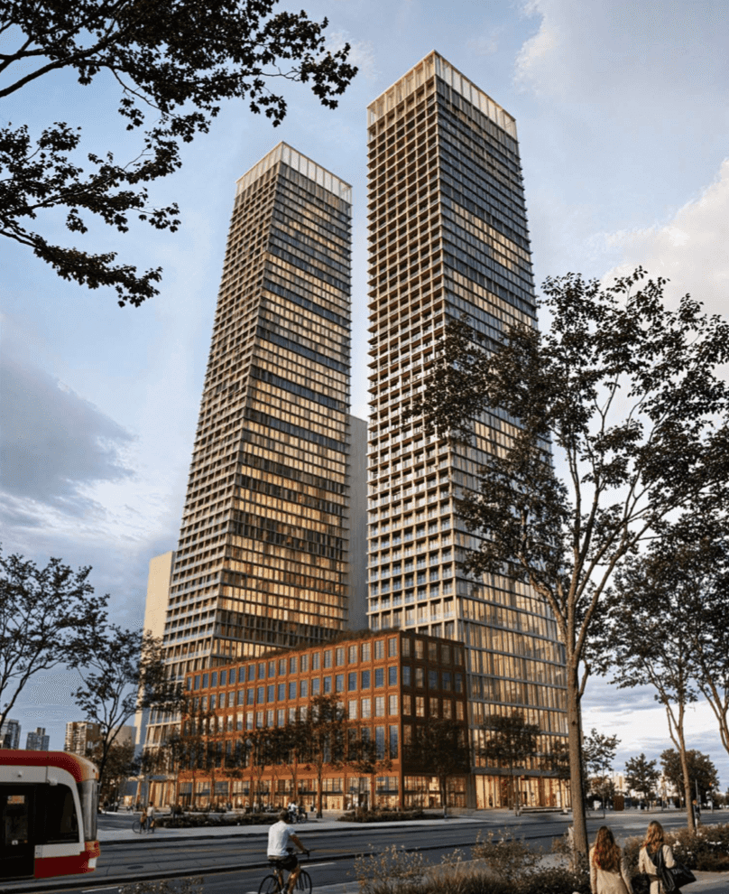 The now-approved Official Plan and Zoning By-law Amendment applications permits 51- and 47-storey towers with 1,030 market condo units between them, as well as space reserved for Production, Interactive, and Creative (PIC) uses. The proposal is in line with the broader transformation of the McCleary District into a dense and transit-oriented mixed-use community and employment hub (a charge that is being led by the City’s housing agency, CreateTO).