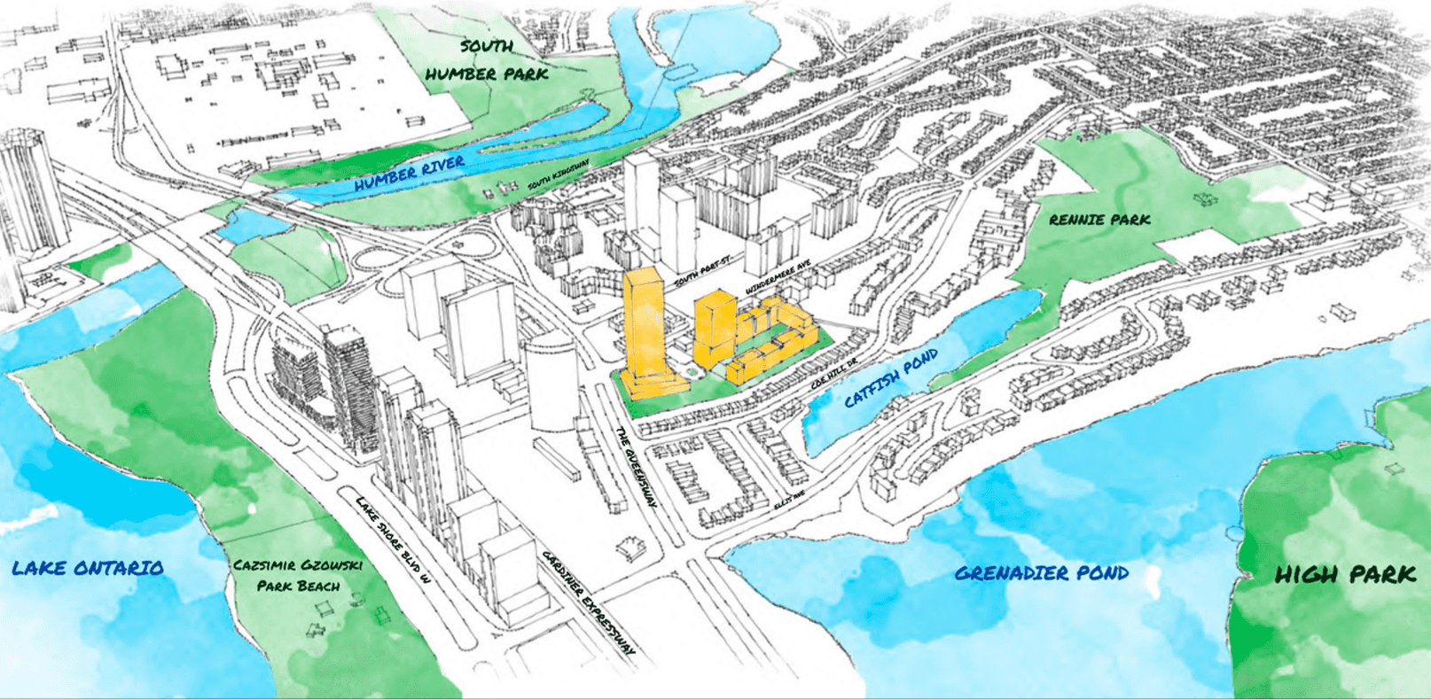 Since that time, the plans have been adjusted slightly, with the now-approved rendition calling for a 37- and 10-storey mixed-use development with 575 units. In addition, the proposal includes an on-site expansion of Flora Voisey Park at 2256 Lake Shore Boulevard West.