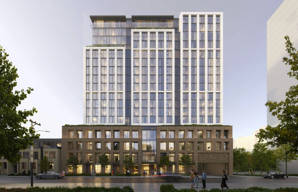 After the Perth Avenue site was approved for 10 storeys and 108 residential units back in March 2022 (proposed in July 2018), developer Castlepoint Numa saw their proposal through a lengthy approvals process for the next several years, landing on a 15-storey iteration in April 2024, and then finally on an 18-storey iteration — the current version — in January 2025. The proposed development now includes 262 dwelling units, which breaks down into 26 studios, 118 one-bedrooms, 92 two-bedrooms, and 26 three-bedroom units. In addition, 13 of the total units are planned to be affordable rental housing units.