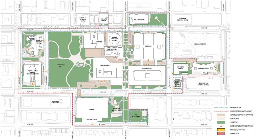 In a press release, Vancouver Coast Health (VCH) said the rezoning application “will enable the hospital campus to grow sustainability and continue to meet the evolving needs of patients, clients, staff, medical staff, and partners from across the province” and called it “an important first step in establishing a long-term planning framework for how the hospital campus could evolve to meet growing health-care demands and care delivery needs.”